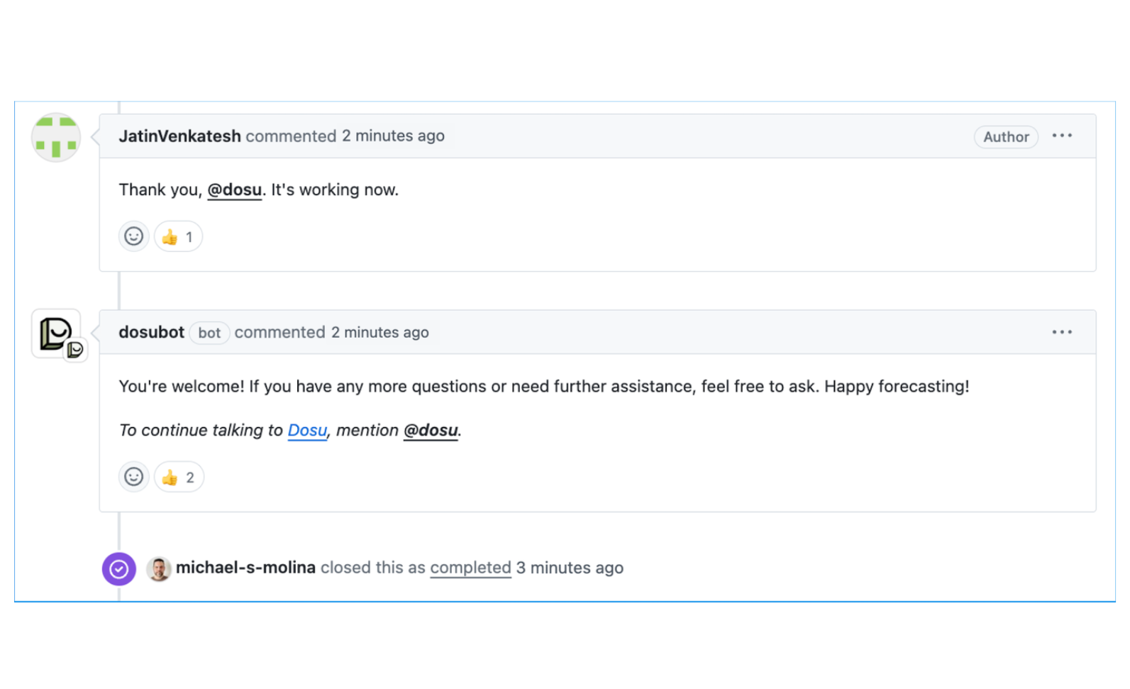 Dosu automatically triages GitHub issues and PRs by embedding their content and running hybrid semantic searches against the LanceDB index . It identifies similar past cases, ranks them based on context and scope, and uses this information to apply accurate, context-aware labels - achieving over 90% accuracy. This automation reduces manual triage by up to 70%, particularly in high-traffic open source projects. This reduces manual triage by up to 70%, accelerating response time and enabling maintainers to focus on higher-leverage work.